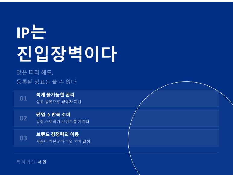 이 지점에서 IP는 단순 권리가 아니라 진입장벽이 됩니다.