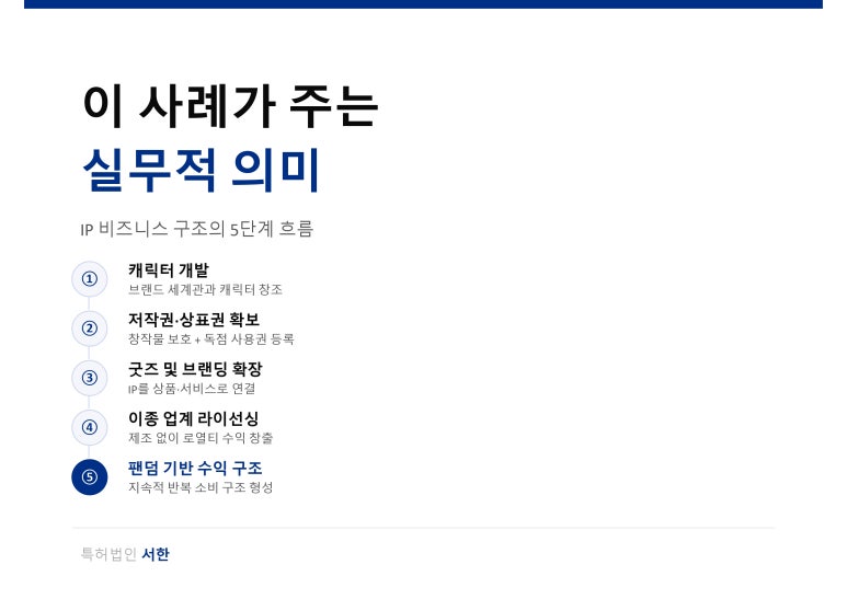 제품은 시간이 지나면 사라질 수 있지만, IP는 계속해서 확장되고 수익을 만들어냅니다.