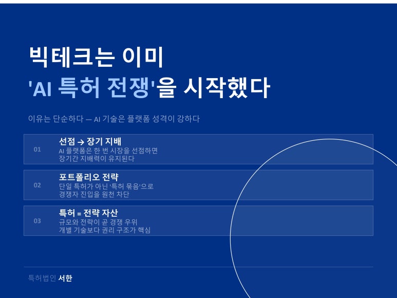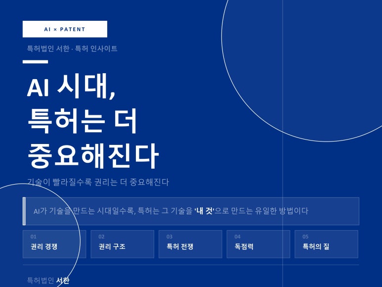 따라서 AI 시대일수록 특허는 단순 보호가 아니라 시장 지배력을 만드는 핵심 도구가 됩니다.